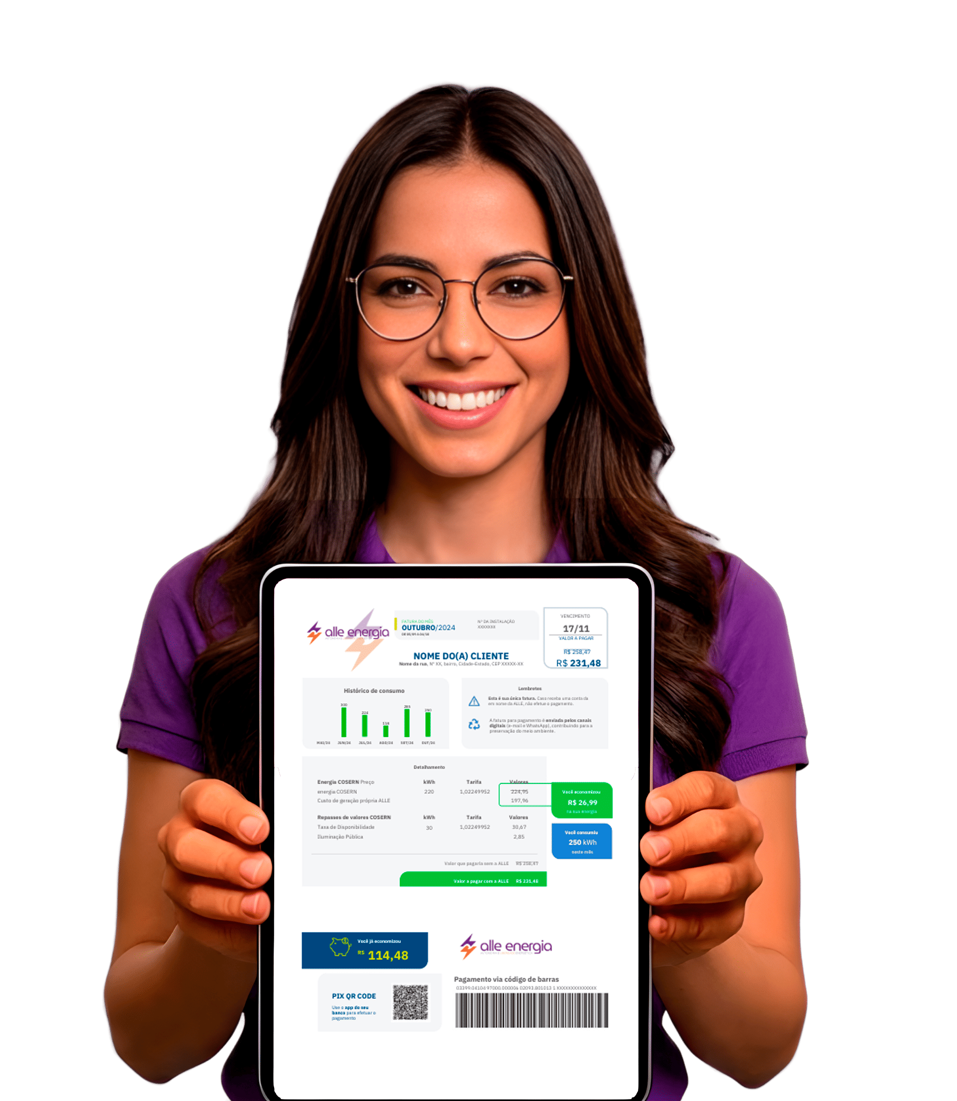 A Alle Energia cuida de tudo. Você continua recebendo energia normalmente — só que pagando menos.